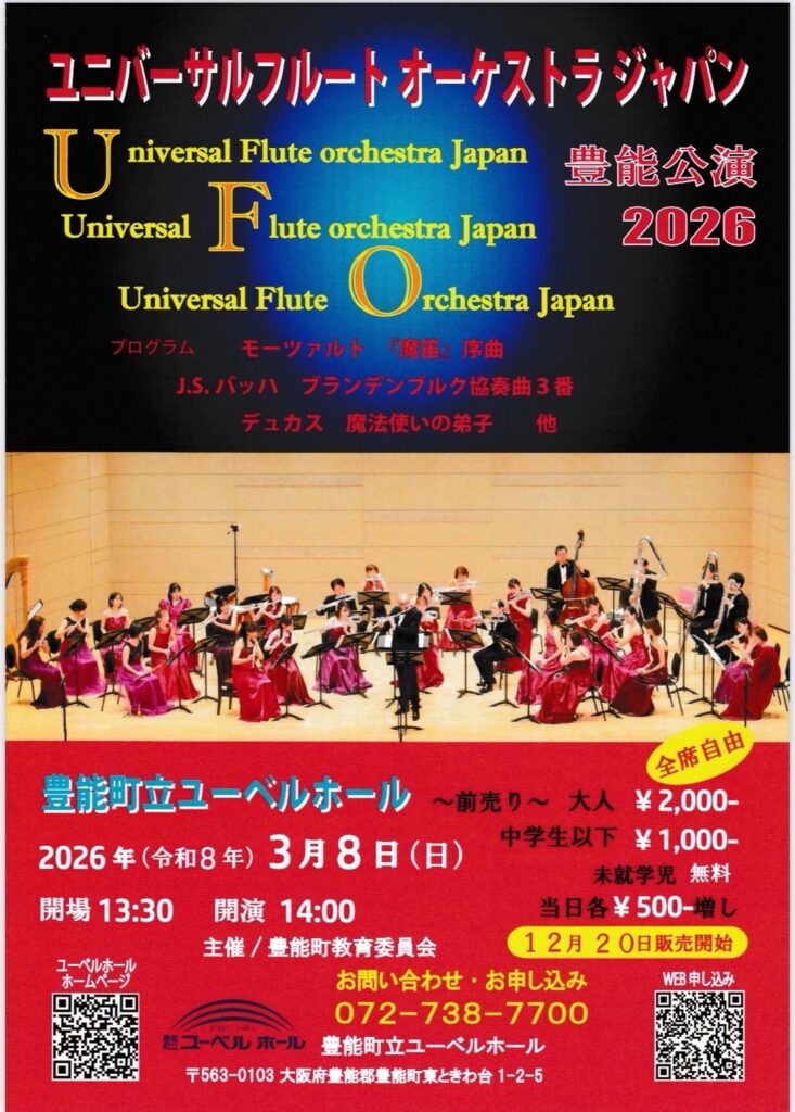 フルートの豊かな響きを追求する「ユニバーサル フルート オーケストラ ジャパン」による、豊能町での特別公演を開催いたします。